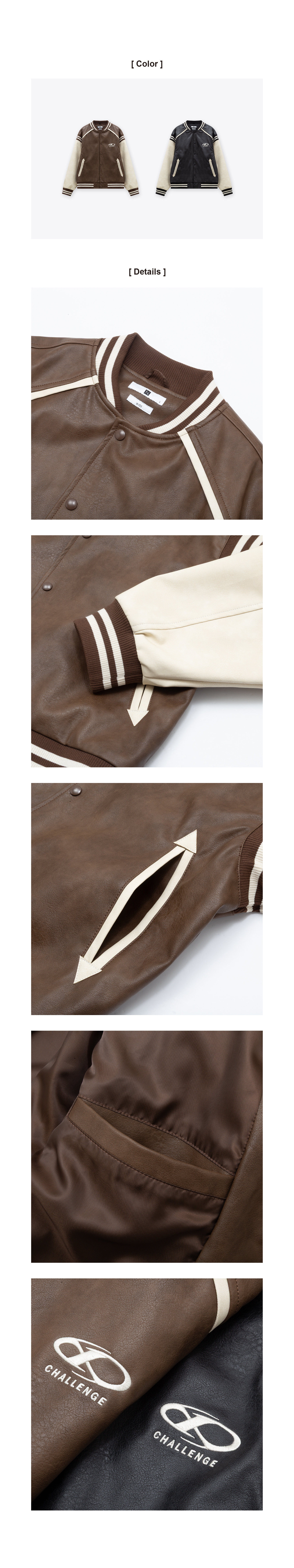 復古拼接繡花棒球皮外套